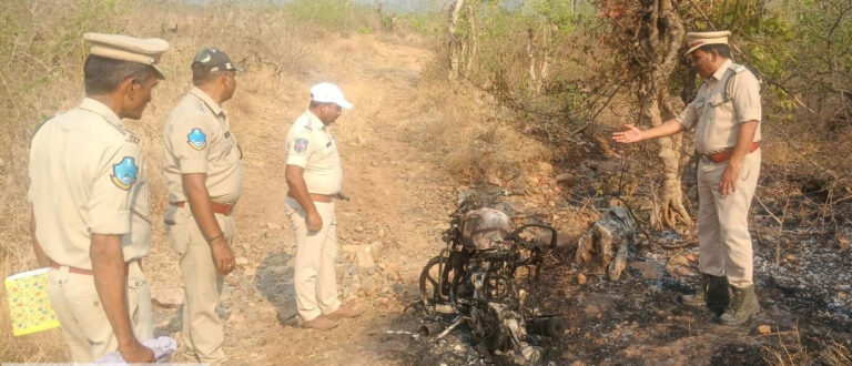 అటవీ అధికారుల బైక్కు నిప్పు పెట్టిన దుండగులు