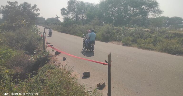 DANGER| మోత్కూర్, ఆంధ్రప్రభ: యాదాద్రి భువనగిరి జిల్లా తుంగతుర్తి నియోజకవర్గంలోని మోత్కూర్ మండలం పాటిమట్ల గ్రామం నుంచి తిరుమలగిరి, అడ్డగుడూర్ వెళ్లే బీటీ రోడ్డు ప్రమాదం అంచున ఉన్నప్పటికీ ఆర్ అండ్ బి అధికారులు నామమాత్రంగా రెడ్ రిబ్బన్ కట్టి, 4 రాళ్లు అడ్డుగా పెట్టి తమ పని ఇంతే అన్నట్లుగా నిర్లక్ష్యంగా వహిస్తున్నారు. ఇటీవల కురిసిన భారీ వర్షాలకు పాటిమట్ల చెరువు వెంట ఓ బావికి బీటీ రోడ్డు అనుకొని ఉంది.