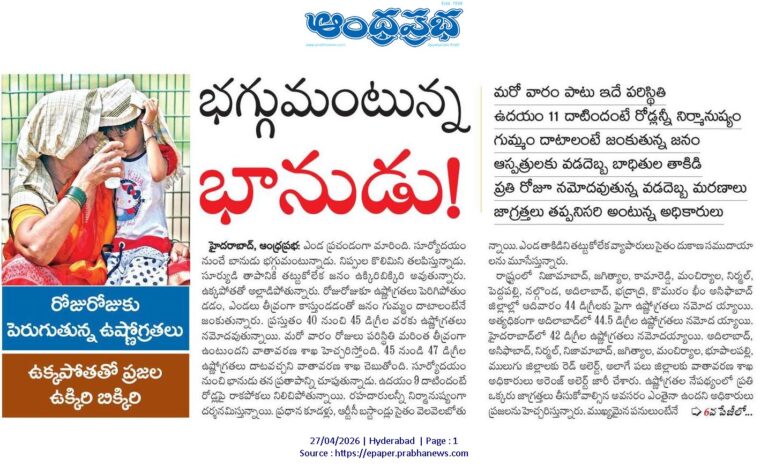 హైదరాబాద్, ఆంధ్రప్రభ: ఎండ తీవ్రత రోజురోజుకూ పెరుగుతోంది. సూర్యోదయం నుంచే భానుడు భగ్గుమంటూ నిప్పుల కొలిమిని తలపిస్తున్నాడు. సూర్యుడి తాపానికి తట్టుకోలేక ప్రజలు ఉక్కిరిబిక్కిరి అవుతున్నారు. ఉక్కపోతతో అల్లాడిపోతున్నారు. ఉష్ణోగ్రతలు పెరుగుతుండటంతో జనం గుమ్మం దాటాలంటేనే జంకుతున్నారు. ప్రస్తుతం 40 నుంచి 45 డిగ్రీల వరకు ఉష్ణోగ్రతలు నమోదవుతున్నాయి. మరో వారం రోజులు పరిస్థితి మరింత తీవ్రమవుతుందని వాతావరణ శాఖ హెచ్చరిస్తోంది. 45 నుంచి 47 డిగ్రీల వరకు ఉష్ణోగ్రతలు దాటే అవకాశం ఉందని తెలిపింది. ఉదయం 9 గంటలకే రోడ్లపై రాకపోకలు తగ్గిపోతున్నాయి. ప్రధాన కూడళ్లు, ఆర్టీసీ బస్టాండ్లు వెలవెలబోతున్నాయి.