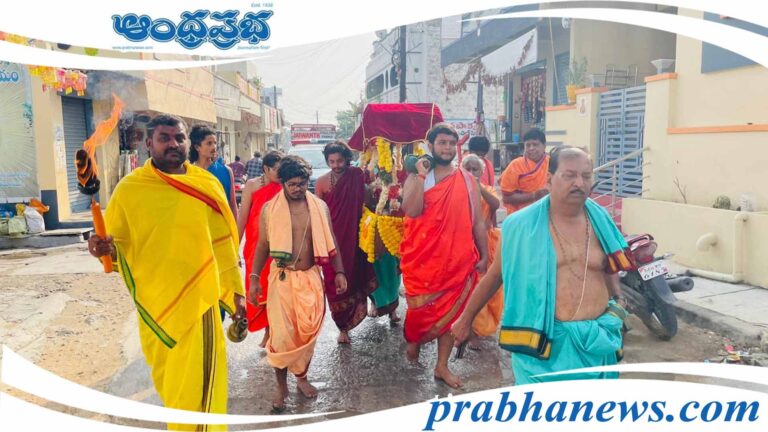 Makthal | మక్తల్, ఆంధ్రప్రభ : నారాయణపేట జిల్లా మక్తల్ పట్టణంలో వెలసిన శ్రీ పడమటి ఆంజనేయస్వామి బ్రహ్మోత్సవాలు వైభవంగా ప్రారంభమయ్యాయి. స్వామివారి బ్రహ్మోత్సవాల్లో భాగంగా మంగళవారం పట్టణంలోని అయోధ్య నగర్ (బ్రాహ్మణ వీధి)లోని ఉత్తరాది మఠం నుండి స్వామివారి ఉత్సవ విగ్రహాలను పల్లకిలో ఊరేగింపుగా నిర్వహించిన శోభాయాత్ర శోభయామానంగా సాగింది. అయోధ్య నగర్ నుండి శివాజీ నగర్ (Shivaji Nagar) ఆజాద్ నగర్, మెయిన్ రోడ్డు గుండా శ్రీ పడమటి ఆంజనేయస్వామి దేవాలయం వరకు స్వామివారి శోభాయాత్ర బాజా భజంత్రీలు, భజనల మధ్య కొనసాగింది.