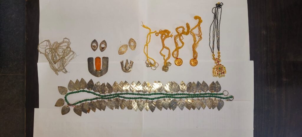 అనంతరం నిందితుడు తన వాంగ్మూలంలో తాను దొంగిలించిన వెండి, బంగారు ఆభరణాలు యడ్లపాడు ఆంజనేయ స్వామి ఆలయానికి చెందినవని, అలాగే వాటిని కనమర్లపూడి శ్రీహరిరావు ఇంటి వద్ద దాచినట్లు చెప్పాడు. దీని పై దర్యాప్త అధికారి, మధ్యవర్తుల సమక్షంలో సూచించిన ప్రదేశానికి వెళ్లి ఆభరణాలను స్వాధీనం చేసుకున్నామన్నారు. గ్రాములు, రెండు జతల ఉత్తర జంద్యాలు -14 గ్రాములు, మెట్టెలు, పిల్లేళ్లు – 20 గ్రాములు, బంగారు ఆభరణాలు మంగళసూత్రం – 4 గ్రాములు, రెండు జతల బంగారు నేత్రాలు – 10 గ్రాములు మొత్తం స్వాధీనం చేసిన వెండి 216 గ్రాములు, బంగారం 14 గ్రాములు. పై ఆభరణాలను యడ్లపాడు ఆంజనేయ స్వామి ఆలయానికి చెందిన చోరీ సొత్తుగా గుర్తించి, తదుపరి దర్యాప్తు నిమిత్తం స్వాధీనం చేసుకుని, నిందితుడిని అరెస్ట్ చేసి రిమాండ్ కు తరలించారు.