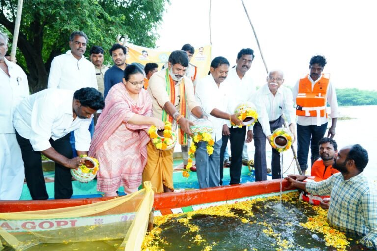 MINISTER| టంగుటూరు, ఆంధ్రప్రభ : ప్రపంచ మత్య్సకార దినోత్సవాన్ని పురస్కరించుకుని శుక్రవారం మంత్రి డా. డోలా శ్రీ బాలవీరాంజనేయస్వామి టంగుటూరు మండలం తూర్పు నాయుడు పాలెం, మల్లవరప్పాడు చెరువుల్లో చేప పిల్లలను వదిలారు. ఈ సందర్భంగా మంత్రి డోలా శ్రీ బాలవీరాంజనేయస్వామి మాట్లాడుతూ… జిల్లాలోని అన్ని రిజర్వాయర్లు, ట్యాంకులు, చెరువుల్లో 7లక్షల చేప పిల్లలను వదలనున్నట్టు చెప్పారు. ఈ సంవత్సరంలో వర్షాలు కురవడంతో రిజర్వాయర్లు, ట్యాంకుల్లో పూర్తి స్థాయిలో నీరు చేరిందన్నారు.