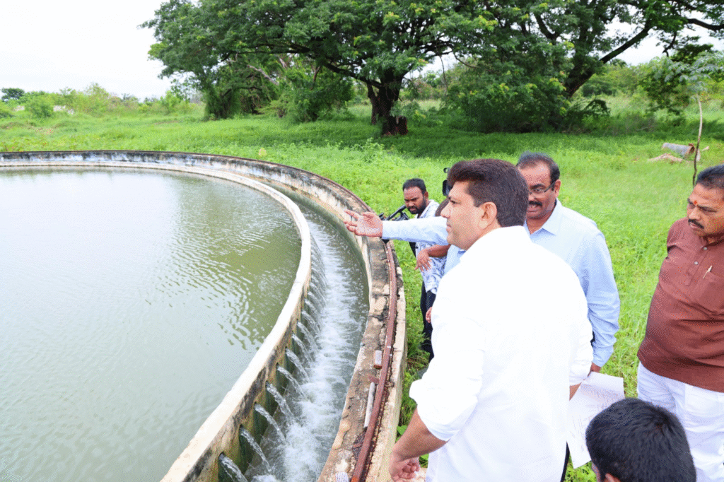 గుంటూరు, ఆంధ్రప్రభ బ్యూరో : గుంటూరులోని తక్కెళ్లపాడు వాటర్ ఫిల్టరేషన్ ప్లాంట్, స్తంభాలగ రువు వాటర్ ట్యాంక్లను కేంద్ర గ్రామీణాభివృద్ధి, కమ్యూనికేషన్ల శాఖ సహాయ మంత్రి డాక్టర్ పెమ్మసాని చంద్రశేఖర్ శుక్రవారం ఆకస్మికంగా తనిఖీ చేశారు. కలెక్టర్ తమీమ్ అన్సారియాతో కలిసి ఆయన ప్లాంట్లో నీటి శుద్ధి ప్రక్రియను సమీక్షించి, ట్రీట్ మెంట్ ప్రక్రియ రికార్డులు, పరికరాల పనితీరును పరిశీలించారు. తరువాత స్తంభాలగరువులోని వాటర్ ట్యాంకులను పరిశీలించిన పెమ్మసాని పాత ట్యాంక్ పై మూత లేకపోవడం, కొత్తగా నిర్మించిన ట్యాంక్లో ఇనుప మెష్ దెబ్బతినడం వంటి సమస్యలను గుర్తించారు.
