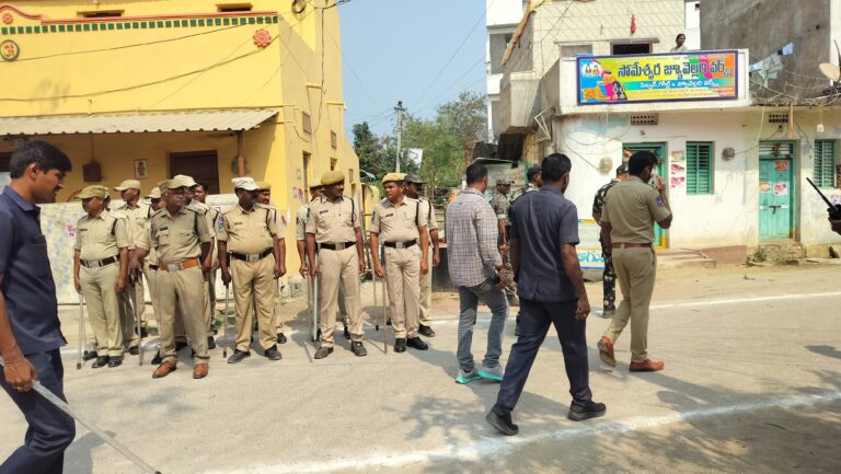 తొర్రూరు, ఆంధ్రప్రభ : తొర్రూరు మున్సిపల్ చైర్మన్, వైస్ చైర్మన్ ఎన్నిక సందర్భంగా భారీగా పోలీసులను మోహరించారు. మహబూబాబాద్ జిల్లా ఎస్పీ శబరీష్ తోపాటు భూపాలపల్లి, సూర్యాపేట ఎస్పీలు,5 గురు డిఎస్పీలు, పలువురు సిఐ,ఎస్సై లతో పాటు సుమారు 1000 మంది పోలీసులను భద్రతకై నియమించారు.తొర్రూరు పట్టణంలోని నలుమూలల పోలీస్ చెక్ పోస్టులను ఏర్పాటు చేసి గుమ్మి కూడకుండా ఏర్పాట్లు చేశారు. 144 సెక్షన్ విధించి ప్రజలు గుంపులు గుంపులుగా ఉండకుండా చర్యలు తీసుకుంటున్నారు. శాంతియుతంగా ఎన్నుకునే విధంగా పట్టణంలో భారీ పోలీసు బలగాలతో ఫ్లాగ్ మార్చ్ నిర్వహించారు.