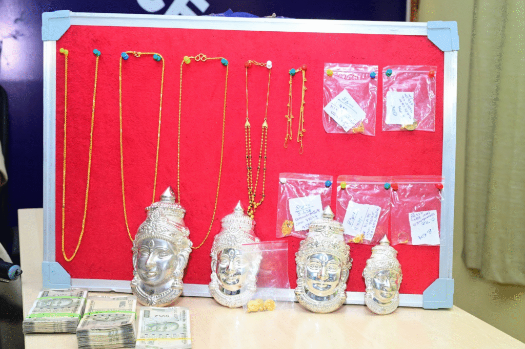 ఈ సందర్భంగా వీరి నుంచి రూ 5 లక్షల,7,200 లు విలువచేసే 657 కిలోల అల్యూమినియం వైరును స్వాధీనం చేసుకున్నట్లు ఎస్పీ తెలిపారు. అదేవిధంగా కదిరి, గాండ్లపెంట, ముదిగుబ్బ, తనకల్లు, కదిరి రూరల్(Kadiri Rural) అప్డేట్ పోలీస్ స్టేషన్ల పరిధిలోని దేవాలయాలలో ఉండిలను పగలగొట్టి నగదును, వెండి, బంగారు ఆభరణాలను దొంగతనాలు చేసే ముగ్గురు ముద్దాయిలు ఒక రిసీవర్ను అరెస్టు చేసినట్లు ఎస్పీ తెలిపారు. ఈ సందర్భంగా వీరు నుంచి ఒక లక్ష 16 వేల నగదు, నాలుగు బంగారు తాళిబొట్లు, నాలుగు అమ్మవారి వెండి ముఖాలు (వాటి మొత్తం విలువ రూ.2,16,500 )స్వాధీనం చేసుకున్నారు.
