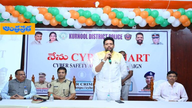 కర్నూలు బ్యూరో : అవగాహనతోనే సైబర్ నేరాల బారిన పడకుండా ఉండగలమని, ప్రతి ఒక్కరూ సైబర్ నేరాల పట్ల అవగాహన ఏర్పరచుకొని, వాటి బారిన పడకుండా జాగ్రత్త వహించాలని ఏపీ పరిశ్రమలు, వాణిజ్యం, ఆహార శుద్ధి శాఖ మంత్రి టీజీ భరత్, జిల్లా ఎస్పీ విక్రాంత్ పాటిల్ తెలిపారు. ఇటీవల సమాజంలో పెరిగిపోతున్న సైబర్ నేరాల నివారణకు ఈరోజు కర్నూలు జిల్లా ఎస్పీ విక్రాంత్ పాటిల్ ఆధ్వర్యంలో కర్నూలు ఆర్ఎస్ రోడ్డులోని స్థానిక కేవీఆర్ కళాశాలలో విద్యార్థినీలకు సైబర్ స్మార్ట్ అవగాహన కార్యక్రమం ఏర్పాటు చేశారు.
