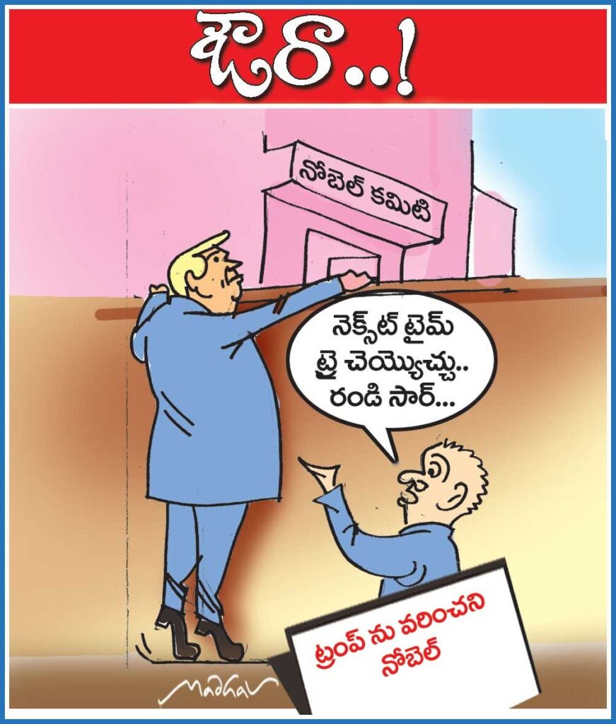 నోబెల్ కమిటి ట్రంప్ కి నో చెప్తూ వెనెజులా ప్రతిపక్ష నాయకురాలు మరియా కొరీనా మచోడా ను ఈ పురస్కారానికి ఎంపిక చేసారు. తాను ఎన్నో యుద్ధాలు ఆపాననీ, నోబెల్ శాంతి పురస్కారం దక్కాలనీ…పాపం ట్రంపు చేసిన ప్రయత్నాలు, చేయించిన లాబీయింగ్ లు అన్నీ ఇన్నీ కావు. అయినా కమిటీ ఇవేవీ పరిగణనలోకి తీసుకోలేదు…వారి పంథాలోనే ఎంపిక కానిచ్చారు.