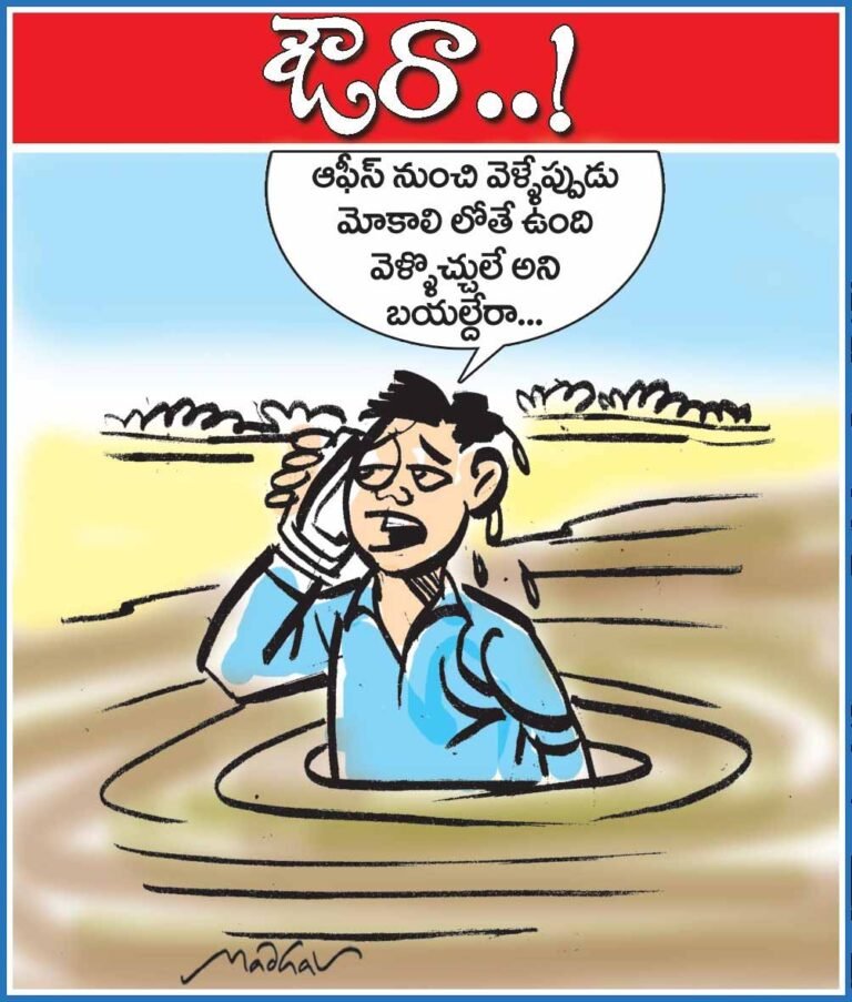Skip to content Employee Satire, Flood Cartoon, Flood Situation Humor, floods, Humorous Picture, Knee Deep Flood, Office Employee Joke, Office Life Jokes, Rain Caricature, Rain Funny Meme, Telugu Funny Cartoons, Telugu Humor, Telugu Social Media Jokes