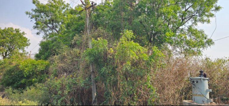 వికారాబాద్, ఆంధ్రప్రభ : వికారాబాద్ విద్యుత్ శాఖ పరిధిలోని నవాబ్పేట మండలం చిట్టిగడ్డ రైల్వే స్టేషన్ సమీపంలో విద్యుత్ స్తంభాలకు చెట్ల తీగలు పెనవేసుకుని ప్రమాదకర పరిస్థితి నెలకొంది. సమీపంలోని విద్యుత్ ట్రాన్స్ఫార్మర్కు కూడా చెట్ల తీగలు పూర్తిగా అల్లుకుపోవడంతో ఎప్పుడైనా ప్రమాదం జరిగే అవకాశం ఉందని స్థానికులు ఆందోళన వ్యక్తం చేస్తున్నారు. రైల్వే స్టేషన్ సమీపంలో విద్యుత్ లైన్లకు చెట్ల కొమ్మలు తగులుతూ ఉండటంతో షార్ట్ సర్క్యూట్ లేదా అగ్నిప్రమాదం జరిగే అవకాశం ఉందని గ్రామస్థులు చెబుతున్నారు. వెంటనే చెట్ల కొమ్మలను తొలగించి సమస్యను పరిష్కరించాలని విద్యుత్ శాఖను కోరుతున్నారు.