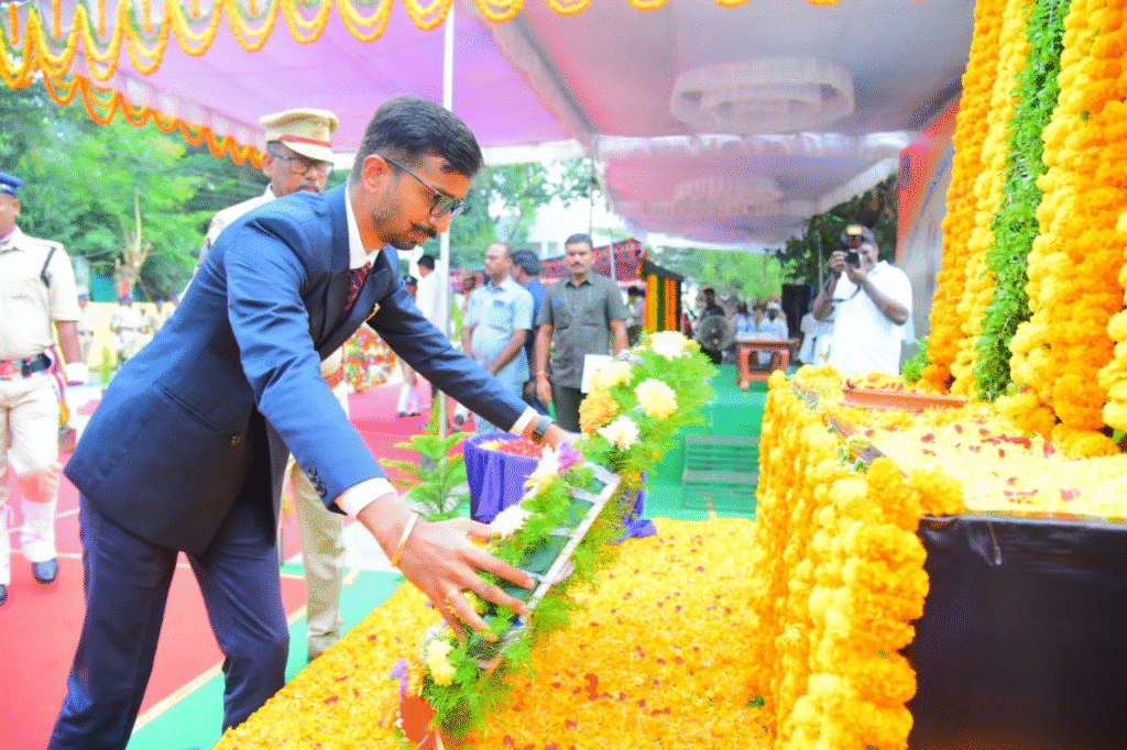 - అమర్ జవాన్ స్తూపం వద్ద రీత్ తో పోలీస్ అమరవీరులకు నివాళులర్పిస్తున్న కలెక్టర్