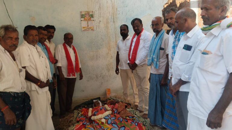 Tributes | మర్రిగూడ, ఆంధ్రప్రభ : రాంరెడ్డిపల్లి గ్రామ పంచాయతీ పరిధిలోని తానేదారుపల్లి గ్రామనికి చెందిన సిపిఐ మాజీ కార్యదర్శి కర్నాటి అంజయ్య తల్లి కర్నాటి చంద్రమ్మ (80)బుధవారం అనారోగ్యంతో మరణించారు. ఆమె పార్థివ దేహానికి గురువారం స్థానిక సర్పంచ్ లపంగి నర్సింహా, సిపిఐ జిల్లా కౌన్సిల్ సభ్యులు ఈదుల బిక్షంరెడ్డి, మండల కన్వీనర్ బుర్ర శేఖర్, మండల కార్యవర్గ సభ్యులు ఎరుకల నిరంజన్ గౌడ్, సిపిఐ నాయకులు జక్కల అంజయ్య, అబ్బనగోని కృష్ణయ్య, చంద్రయ్య, దేవేందర్, మల్లయ్య, బాలకిషన్ లు పూలమాల వేసి నివాళులు అర్పించారు.