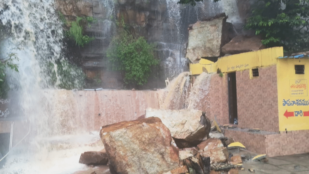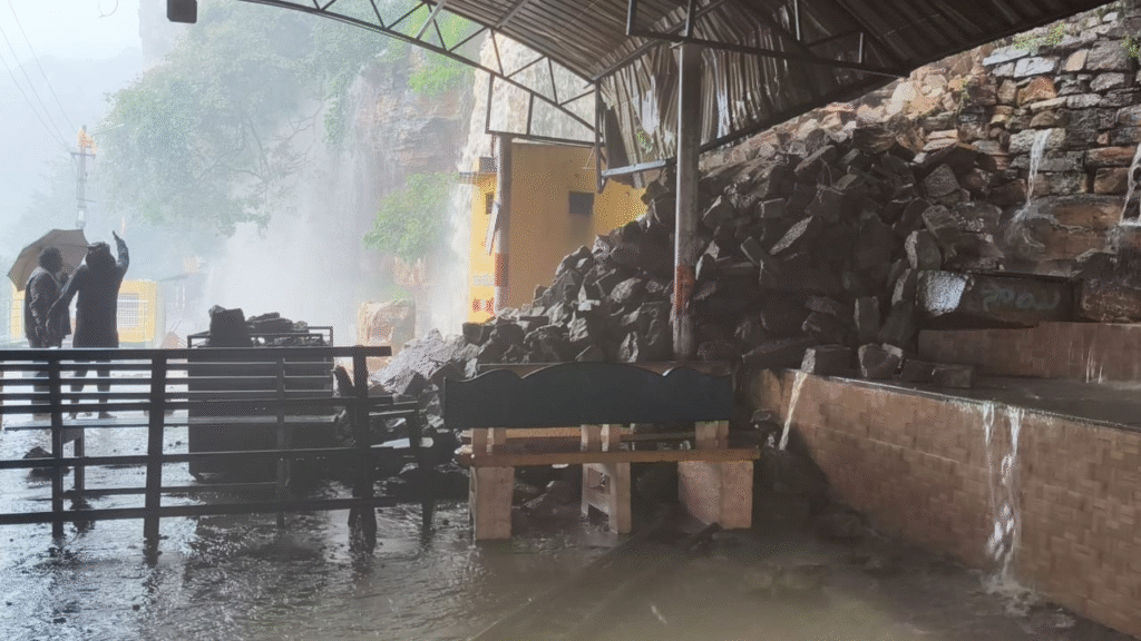 అచ్చంపేట అక్టోబర్ 29, (ఆంధ్రప్రభ) : గత నాలుగు రోజులుగా కొనసాగుతున్న భారీ వర్షాల కారణంగా శ్రీశైల ఉత్తర ద్వారం శ్రీ ఉమామహేశ్వర స్వామి దేవస్థానం పరిసర ప్రాంతాల్లో పరిస్థితి ప్రమాదకరంగా మారింది. కొండపైన, కొండకింద మట్టిచరియలు విరిగి పడడంతో భక్తుల రాకపోకలకు తీవ్ర ఇబ్బందులు తలెత్తాయి.