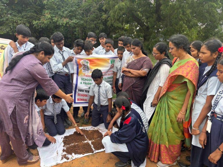 SOIL TEST | ఎమ్మిగనూరు, ఆంధ్రప్రభ :మండలం విద్యార్థులకు నేల ఆరోగ్యలోని బనవాసి జవహర్ నవోదయ విద్యాలయం నందు పీఎంఎస్ హెచ్ఆర్ఐ ఎస్ హెచ్ ఆర్ ఐ – ఎస్ ఎస్ హెచ్ పి పథకం కింద పాఠశాలలో శనివారం భూసార పరీక్షలపై మండల వ్యవసాయ అధికారి శివశంకర్ అవగాహన సదస్సు నిర్వహించారు. ఈ సందర్భంగా ఆయన మాట్లాడుతూ విద్యార్థులకు నేల ఆరోగ్యం, భూసార పరీక్షల ఆవశ్యకత, మట్టి నమూనాలను తీసే పద్ధతిని చూపించి, పరీక్షల వల్ల కలిగే లాభాలను వివరించారు.