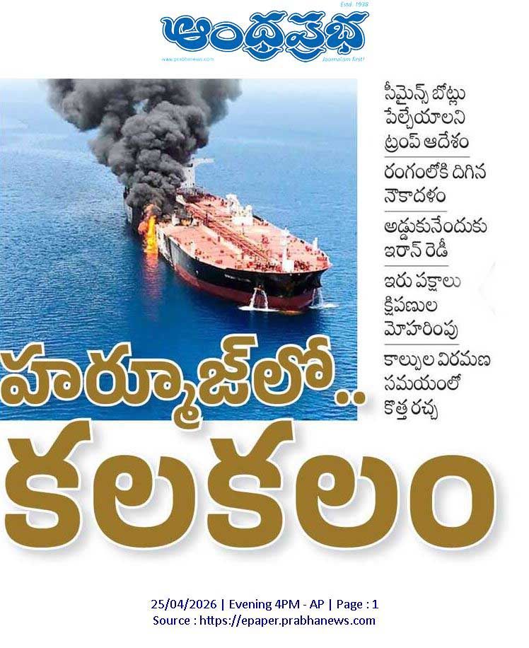 హర్మూజ్ జలసంధిలో ట్రంప్ ఆదేశాల కలకలం అమెరికా అధ్యక్షుడు డోనాల్డ్ ట్రంప్ తన నౌకాదళానికి జారీ చేసిన ఒక ఉత్తర్వు ఇప్పుడు ప్రపంచవ్యాప్తంగా చర్చనీయాంశమైంది. హర్మూజ్ జలసంధిలో ఇరాన్కు చెందిన మైన్లు (సముద్రంలో పేలే బాంబులు) బిగించే బోట్లు కనిపిస్తే వెంటనే కాల్చివేయాలని ట్రంప్ ఆదేశించారు. ఇరాన్ తన చిన్న, వేగవంతమైన బోట్ల ద్వారా ఈ కీలక జలమార్గంలో మైన్లను ఏర్పాటు చేస్తూ, ప్రపంచ దేశాలకు వెళ్లే చమురు రవాణాను అడ్డుకోవాలని చూస్తోందని అమెరికా ఆరోపిస్తోంది. దీనికి అడ్డుకట్ట వేసేందుకు అమెరికా నౌకాదళం ఇప్పటికే హర్మూజ్ ప్రాంతాన్ని తమ గుప్పిట్లోకి తీసుకుంది.