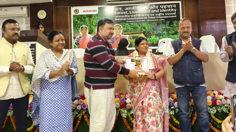 ఉట్నూర్, ఆంధ్రప్రభ : ఆదివాసీ మహిళల సాధికారత హక్కులు అటవీ హక్కుల పై నిరంతరం కృషి చేస్తున్న ఆదిలాబాద్ జిల్లా ఉట్నూర్ మండలం లక్కారం గ్రామానికి చెందిన ఆదివాసి మహిళ మర్సకొల సరస్వతికి ఆదివారం ఒరిస్సా భువనేశ్వర్ లో మూడు రోజులుగా జరుగుతున్న యాక్షన్ ఎయిడ్ సంస్థ ఆధ్వర్యంలో ఆదివాసుల జీవన విధానం ఫారెస్ట్ లైలీ వుడ్ కార్యక్రమాలపై జరుగుతున్న జాతీయస్థాయి సమావేశంలో పురస్కారం అందించినట్లు ఆమె భర్త లక్కారం మాజీ సర్పంచ్ మరుసుకోల తిరుపతి తెలిపారు.