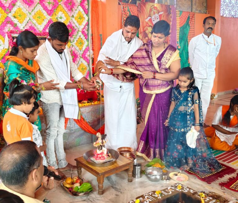 Vasanta Panchami | ముధోల్, ఆంధ్రప్రభ : ముధోల్ మండల కేంద్రంలోని శ్రీ సరస్వతి శిశు మందిర్ ఉన్నత పాఠశాల ఆధ్వర్యంలో దాహేగాం, దౌలతాబాద్ గ్రామాలతో పాటు ముధోల్ లోని రెండు శిశు మందిర్ పాఠశాలలో వసంత పంచమి వేడుకలను ఘనంగా నిర్వహించారు. ఈ సందర్భంగా వేద పండితుల మంత్రోచరణలతో మధ్య గాయత్రి హోమంను నిర్వహించారు. సరస్వతి దేవికి పంచామృతాభిషేకం, విశేషమైన పూజలు నిర్వహించారు.