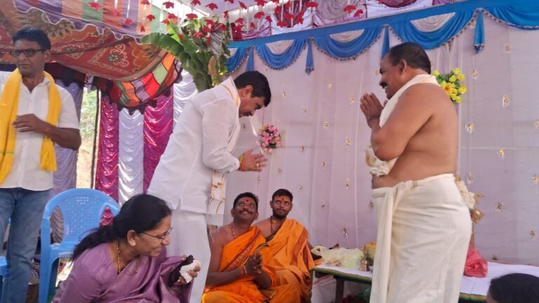 వేల్పూర్, ఆంధ్రప్రభ : నిజామాబాద్ జిల్లా వేల్పూర్ మండల కేంద్రంలోని గురువారం శ్రీ పోతులూరి వీర బ్రహ్మేంద్ర స్వామి ఆలయ బ్రహ్మోత్సవాలకు మాజీ మంత్రి వేముల ప్రశాంత్ రెడ్డి, సతీమణి పాల్గొన్ని ప్రత్యేక పూజా కార్యక్రమాలను నిర్వహించారు. ఈ కార్యక్రమాలను బుధవారం రోజు ధ్వజస్తంభంకు ప్రత్యేక పూజా కార్యక్రమాలను పురోహితులు ప్రవీణ్ చారి ఆలయ పురోహితులు అంబిడి రమేష్ పూజా కార్యక్రమాలను నిర్వహించడం జరిగిందని అధ్యక్షుడు శ్రీధర్ తెలిపారు. ఈ కార్యక్రమంలో అధ్యక్షుడు శ్రీధర్ క్యాషియర్ చారి,సర్పంచి అశోక్, ఉపసర్పంచి బాలయ్య,బి ఆర్ ఎస్ పార్టీ మండలం అధ్యక్షులు నాగదర్ రెడ్డి, విశ్వబ్రాహ్మణ సంఘ సభ్యులు తదితరులు పాల్గొన్నారు