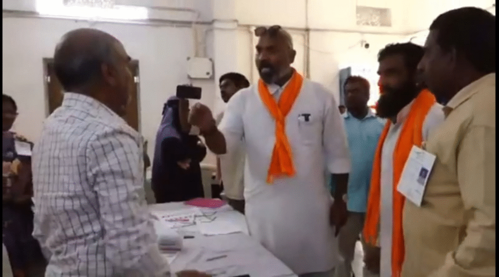 పోలింగ్ కేంద్రంలో విధులు నిర్వర్తిస్తున్న ఉద్యోగితో ఎంపీ తీరు