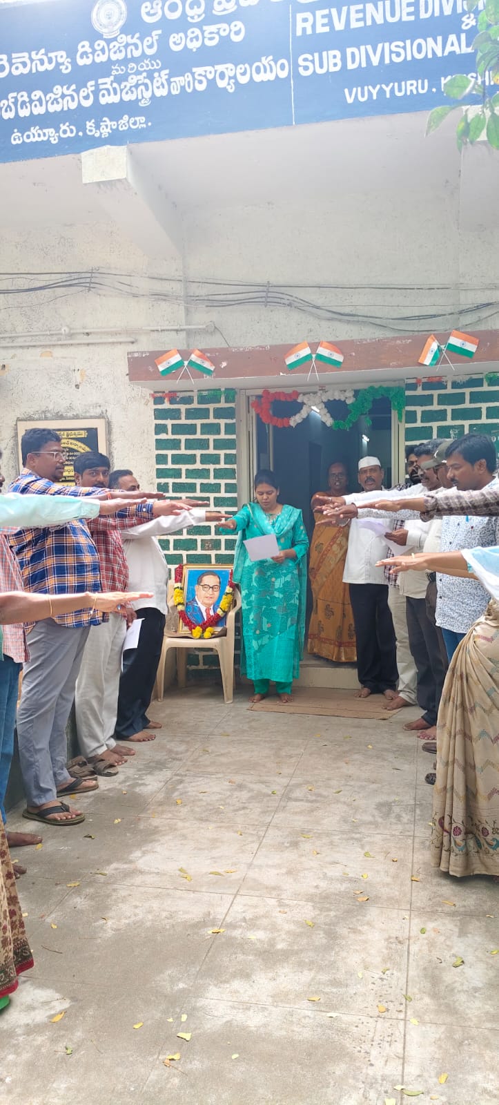 Constitution Day, ఉయ్యూరు, ఆంధ్రప్రభ : రెవెన్యూ డివిజినల్ అధికారి కార్యాలయంలో రాజ్యాంగ దినోత్సవం (Constitution Day) వేడుకలు రెవెన్యూ డివిజినల్ అధికారిణి బి.యస్.హెలా షారోన్ ఆధ్వర్యంలో ఘనంగా జరిగాయి. ఈ సందర్భంగా భారత రాజ్యాంగం విశిష్టతను తెలుపుతూ రెవెన్యూ డివిజినల్ అధికారిణి, డివిజన్ లోని ఉద్యోగులు అందరూ భారత రాజ్యాంగాన్ని అనుసరించి విధులు నిర్వర్తించాలని తెలిపారు. ఈ కార్యక్రమంలో డివిజినల్ పరిపాలనా అధికారి కె. రాజకుమార్, కార్యాలయ సిబ్బంది పాల్గొన్నారు.