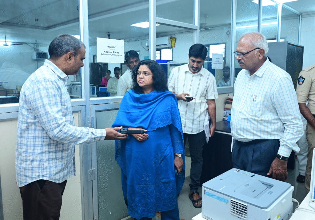 భీమవరం, ఆంధ్రప్రభ బ్యూరో: మొంథా తుఫానుతో ఎటువంటి సమస్యలు తలెత్తకుండా అధికారులు, కంట్రోల్ రూమ్ సిబ్బంది 24 గంటల పాటు అప్రమత్తంగా ఉండాలని జిల్లా కలెక్టర్ చదలవాడ నాగరాణి (Collector Chadalawada Nagarani) సూచించారు. మొంథా తుపాను నేపథ్యంలో కలెక్టరేట్లో ఏర్పాటు చేసిన కంట్రోల్ రూమును జిల్లా కలెక్టర్ చదలవాడ నాగరాణి, జిల్లా ఎస్పీ అద్నాన్ నయీం అస్మి సోమవారం పరిశీలించి కంట్రోల్ రూమ్ కు ప్రజల నుండి వచ్చిన కాల్స్ వివరాలు అడిగి తెలుసుకున్నారు.