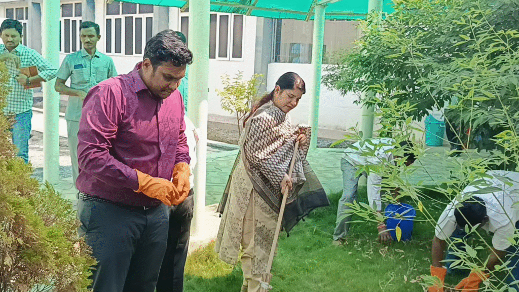 Swarnandhra | నంద్యాల బ్యూరో, ఆంధ్రప్రభ : రాష్ట్ర ప్రభుత్వం ప్రతిష్ఠాత్మకంగా అమలు చేస్తున్న స్వర్ణాంధ్ర–స్వచ్ఛ ఆంధ్ర కార్యక్రమంలో ప్రతి ఒక్కరూ చురుకుగా పాల్గొని పారిశుద్ధ్య చర్యలకు తోడ్పడాలని జిల్లా కలెక్టర్ జి. రాజకుమారి పిలుపునిచ్చారు. శనివారం కలెక్టరేట్ ప్రాంగణంలో ఈ కార్యక్రమాన్ని ఘనంగా నిర్వహించారు. కార్యక్రమంలో కలెక్టర్తో పాటు జాయింట్ కలెక్టర్ కొల్లా బత్తుల కార్తీక్, డీఆర్ఓ రాము నాయక్, వివిధ శాఖల అధికారులు, సిబ్బంది పాల్గొన్నారు.