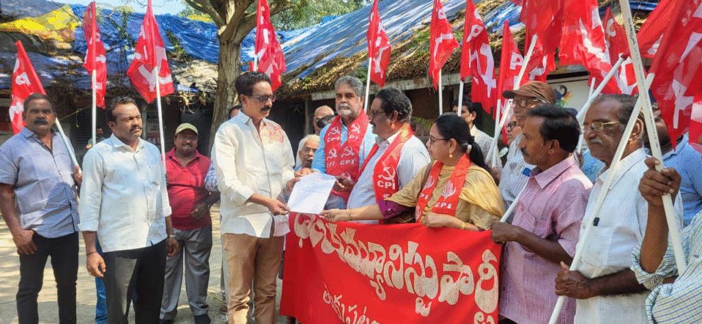సీపీఐ జాతీయ సమితి ఇచ్చిన దేశవ్యాపిత పిలుపుమేరకు జనగణనలో కులగణన చేపట్టాలని కోరుతూ సీపీఐ తణుకు పట్టణ సమితి ఆధ్వర్యంలో మంగళవారం తణుకు తహసీల్దార్ కార్యాలయం (Tahsildar’s Office) వద్ద ధర్నా నిర్వహిచి డిమాండ్లతో కూడిన వినతిపత్రాన్ని తహసీల్దార్ డి.అశోక్ వర్మకు అందజేశారు.