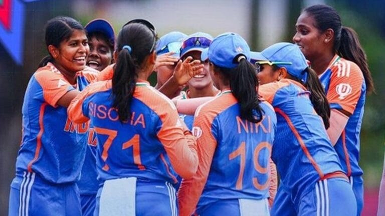 ఇక 114 పరుగులు లక్ష్యంతో బరిలోకి దిగిన భారత్ కు శుభారంభం ఇచ్చారు.. తెలుగమ్మాయి త్రిష గొంగడి, కమిలినితో కలసి తొలి వికెట్ కు 60 పరుగులు జోడించారు.. త్రిష 35 పరుగులు చేసి పెవిలియన్ కు చేరింది.. ఇందులో అయిదు ఫోర్లు ఉన్నాయి. ఇక మరో ఓపెనర్ కమిలిని 56 పరుగులతో, సానికా 11 పరుగులతో నాటౌట్ గా నిలిచారు.