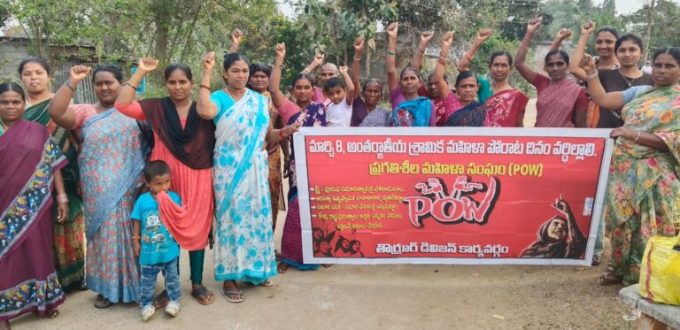 శ్రమ చేసే కార్మిక మహిళలకు ఉద్యోగ భద్రత లేదని, కేంద్ర ప్రభుత్వం లేబర్ కోడ్ లు తీసుకువచ్చి మహిళలను ఇబ్బందులకు గురిచేస్తుందన్నారు. మహిళలు రాత్రి వేళల్లో పనిచేసేలా లేబర్ కోడ్ ఉందన్నారు. మహిళల హక్కులను హరించేలా కేంద్ర ప్రభుత్వ విధానాలు ఉన్నాయని, దానికి వ్యతిరేకంగా మహిళా లోకం ఐక్యంగా పోరాడాలని పిలుపునిచ్చారు.ఈ కార్యక్రమంలో నాయకులు మమత, శారద, యాకలక్ష్మి, సూర వెంకటమ్మ, పద్మ, శిరీష, ఇంద్రమ్మ, ఉప్పలమ్మ, కళమ్మ, సాయమ్మ, స్వరూప తదితరులు పాల్గొన్నారు.