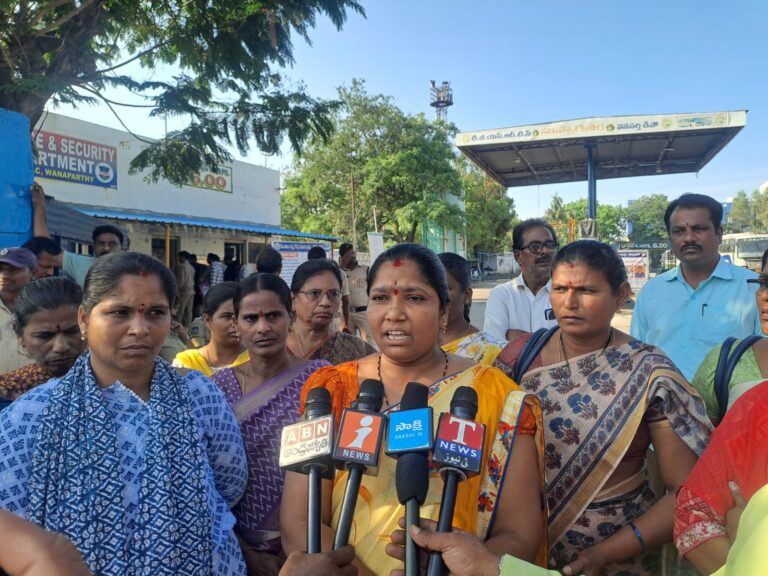 వనపర్తిటౌన్, ఆంధ్రప్రభ : ఆర్టీసీ రక్షణతో పాటు కార్మికుల సమస్యల పరిష్కారం, కాంగ్రెస్ ప్రభుత్వం ఇచ్చిన హామీల అమలు కోరుతూ టీజీఎస్ ఆర్టీసీ జాయింట్ యాక్షన్ కమిటీ పిలుపు మేరకు బుధవారం మొదటి డ్యూటీ నుంచే సమ్మె ప్రారంభమైంది. ఈ సందర్భంగా వనపర్తి డిపోలో బస్సులను స్వచ్ఛందంగా నిలిపివేసి ఆర్టీసీ ఉద్యోగులు సమ్మెలో పెద్దఎత్తున పాల్గొన్నారు.