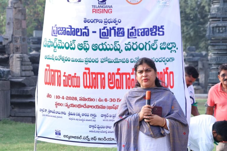 ఖిలావరంగల్, ఆంధ్రప్రభ : శరీరం, మనసు, ఆత్మ సమతుల్యతకు యోగమే మార్గమని జిల్లా కలెక్టర్ డాక్టర్ సత్య శారద అన్నారు. ప్రజాపాలన ప్రగతి ప్రణాళిక 99 రోజుల కార్యాచరణలో భాగంగా 5వ రోజు ఆరోగ్య థీమ్ సందర్భంగా శుక్రవారం ప్రపంచ హోమియోపతి దినోత్సవం, ఆయుష్ దినోత్సవం వేడుకలు ఖిలావరంగల్ లో ఘనంగా నిర్వహించబడ్డాయి. ఉదయం స్వయంభూ దేవాలయం వద్ద నిర్వహించిన యోగ ప్రదర్శనలో జిల్లా కలెక్టర్ డాక్టర్ సత్య శారద స్వయంగా పాల్గొని యోగ ఆసనాలు వేశారు.